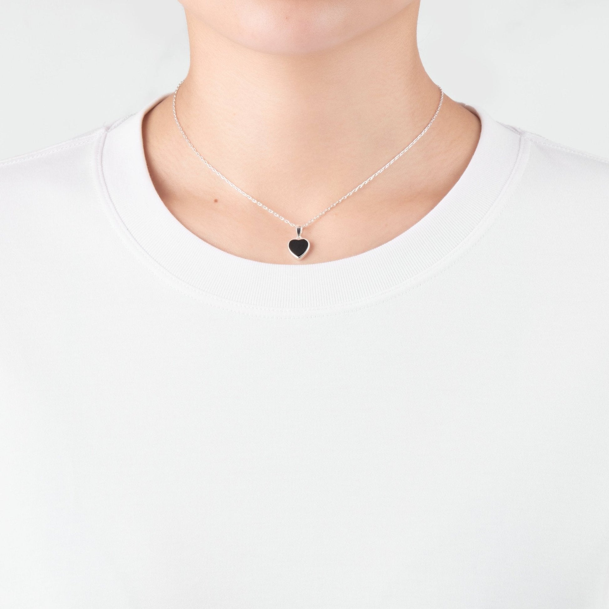 This elegant heart shaped necklace features genuine black onyx, silver plating, and a hypoallergenic brass base. With a 43cm adjustable chain and secure lobster clasp, it’s lightweight and perfect for daily wear. Comes beautifully packaged in a gift pouch.