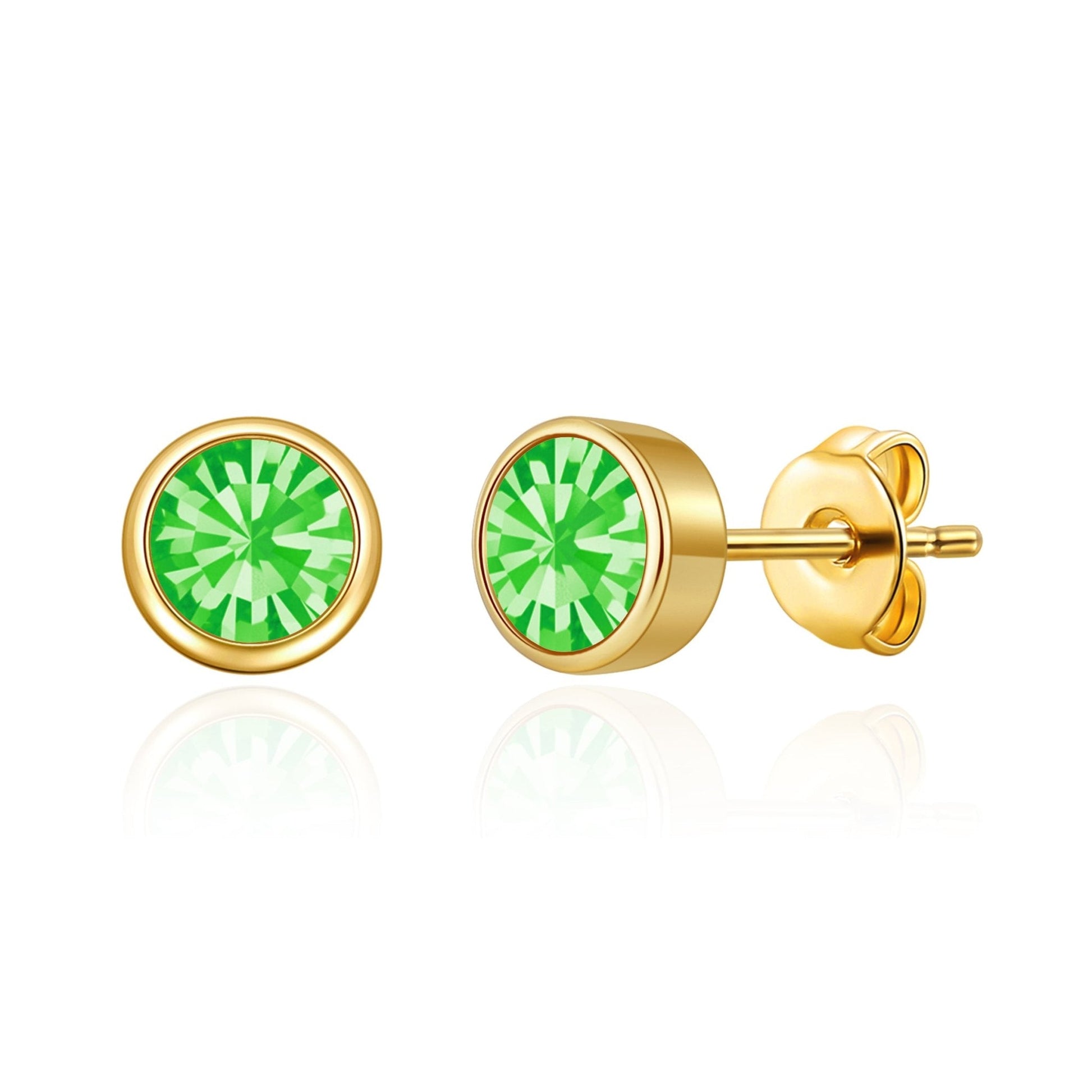 Gold Plated August (Peridot) Birthstone Earrings Created with Zircondia® Crystals