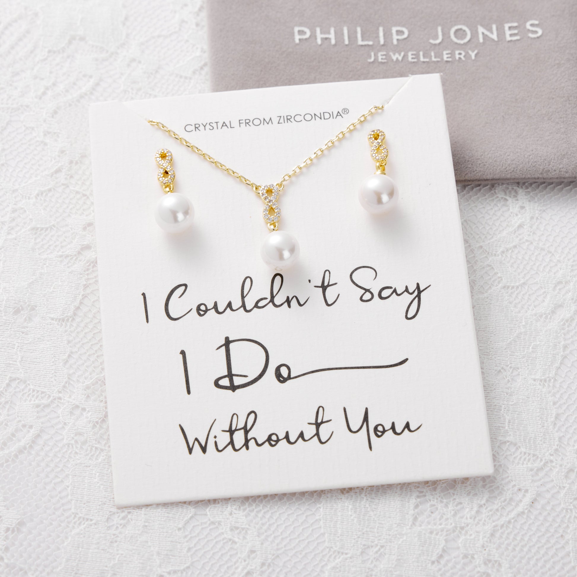 Gold Plated I Couldn't Say I Do Without You Infinity Pearl Drop Set with Zircondia® Crystals