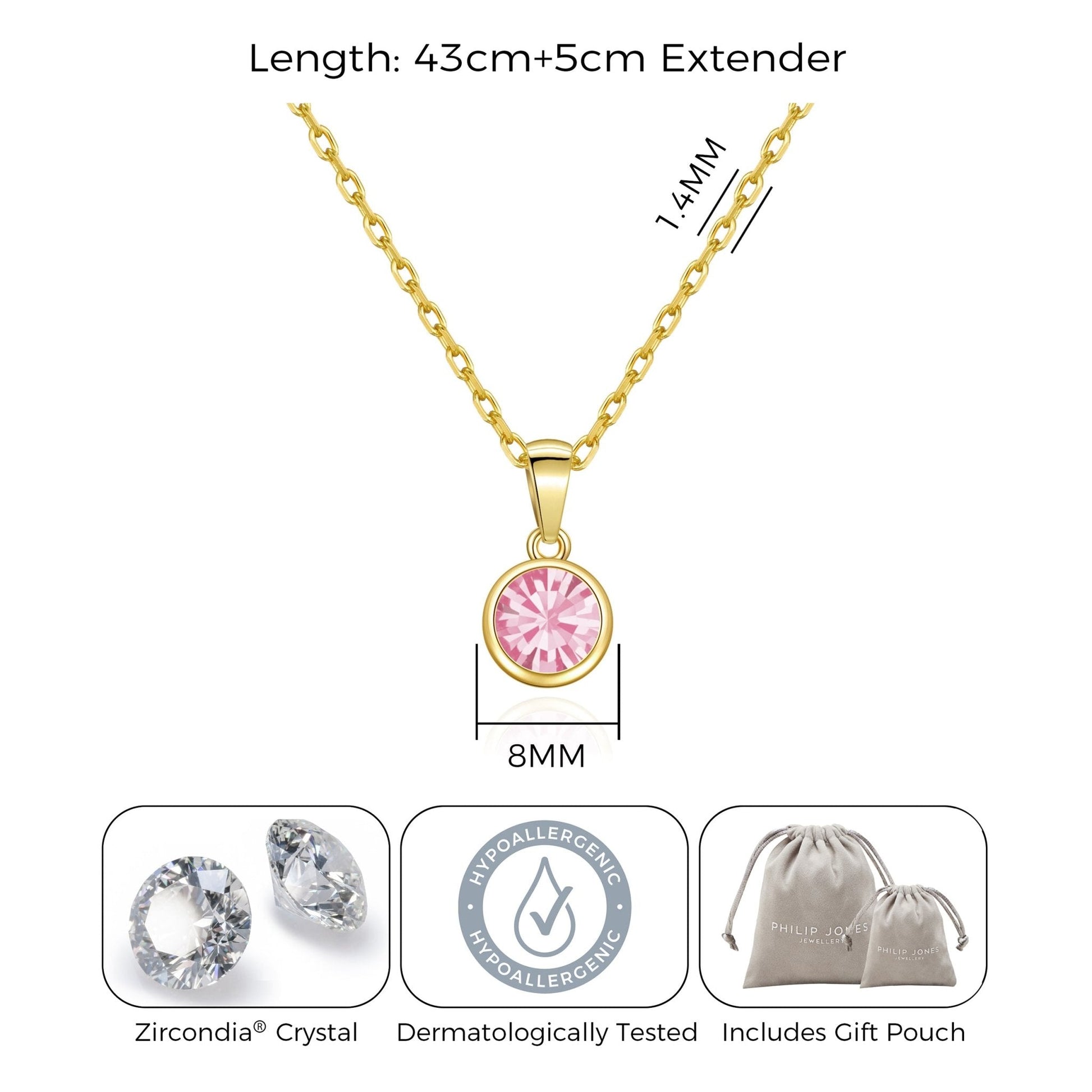 Enchant your look with Philip Jones' signature gold plating and a luxurious brass alloy necklace, featuring a 14mm (H) x 8.5mm (W) pendant and a complimentary 43cm + 5cm extender chain. The lobster claw closure ensures a secure fit, while the shimmering crystalline round Zircondia® pink stones with a 8mm diameter lend an extra dose of glamour. At a weight of 3.5g, you'll be sure to ace your style game!