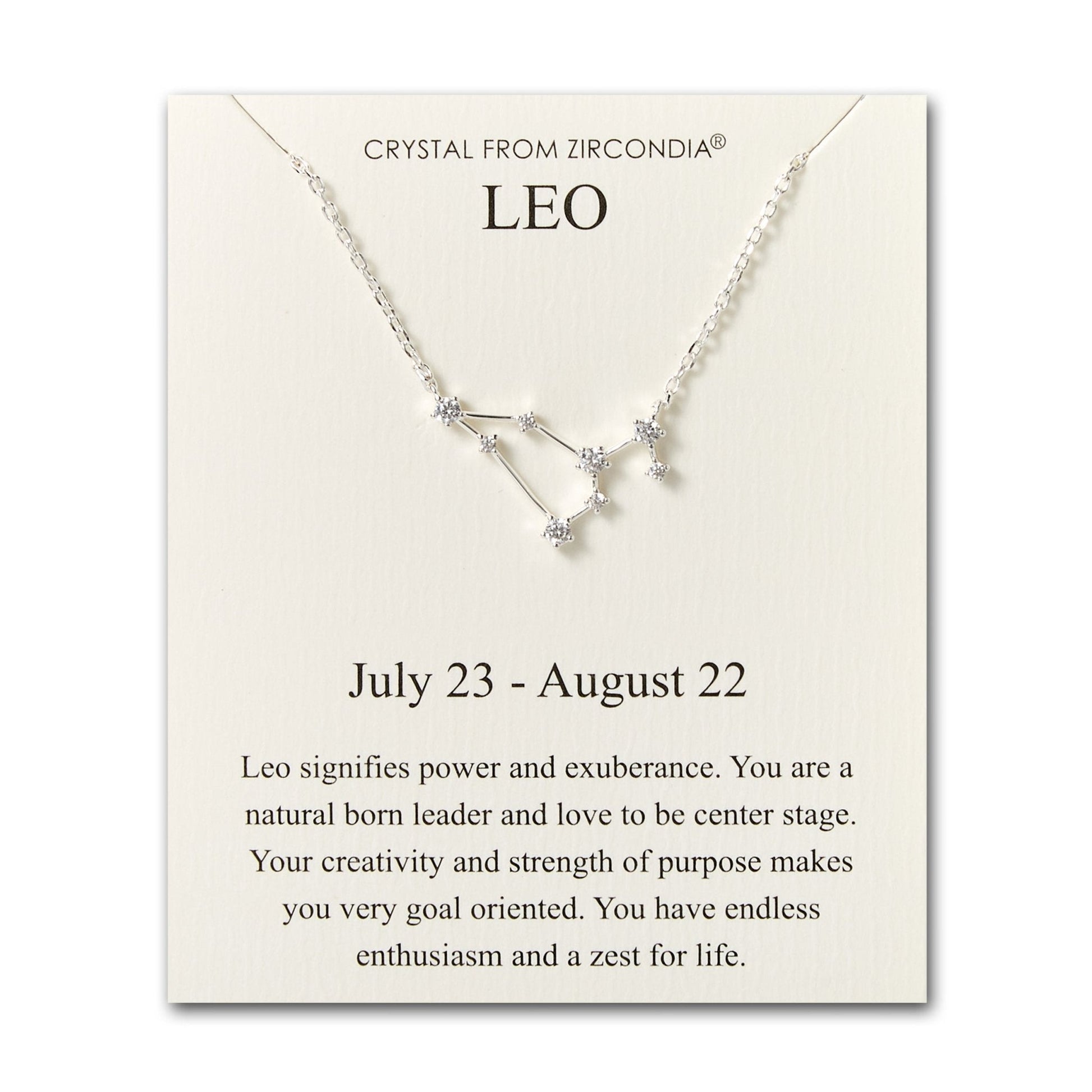 Leo Star Sign Zodiac Constellation Necklace and Quote Card with Zircondia® Crystals