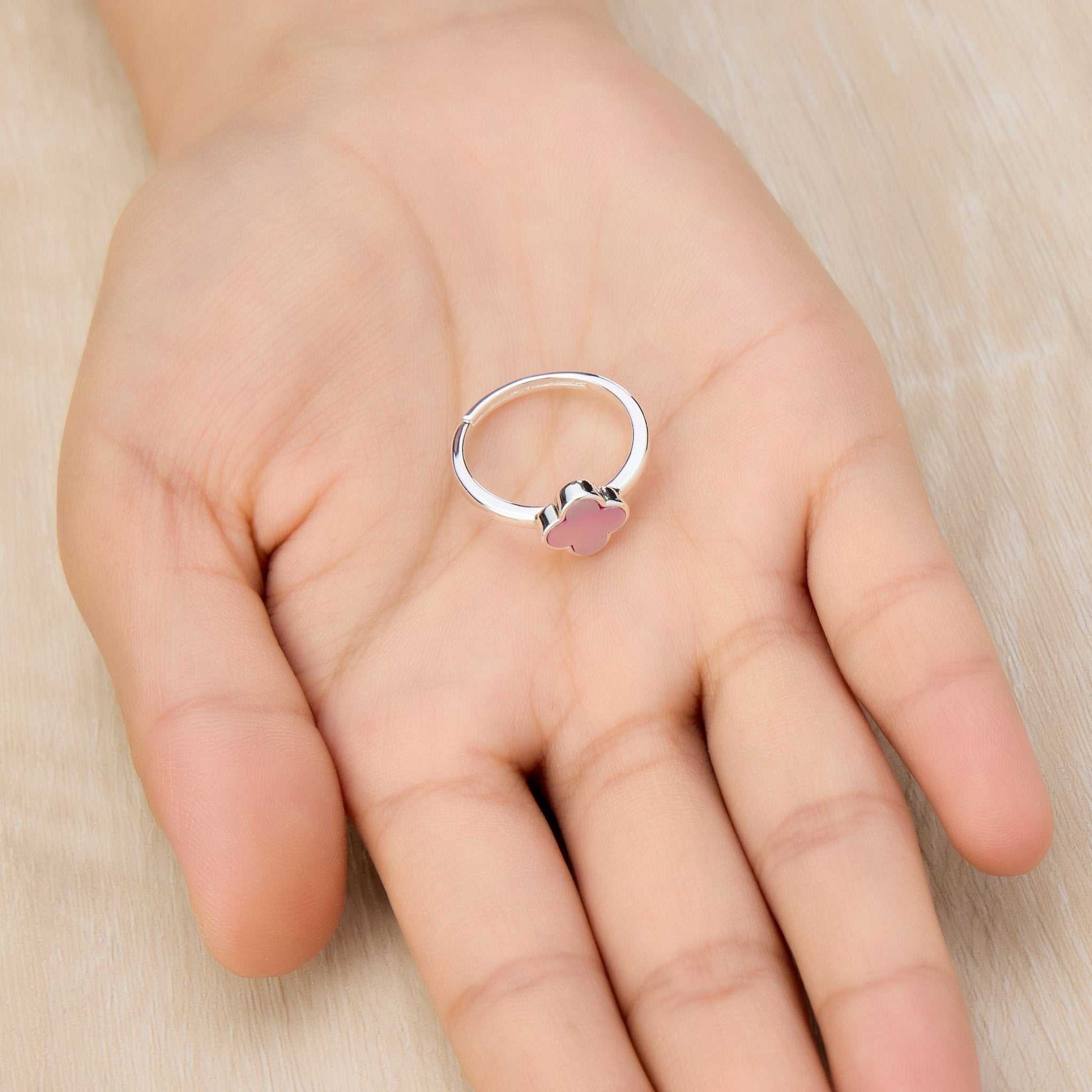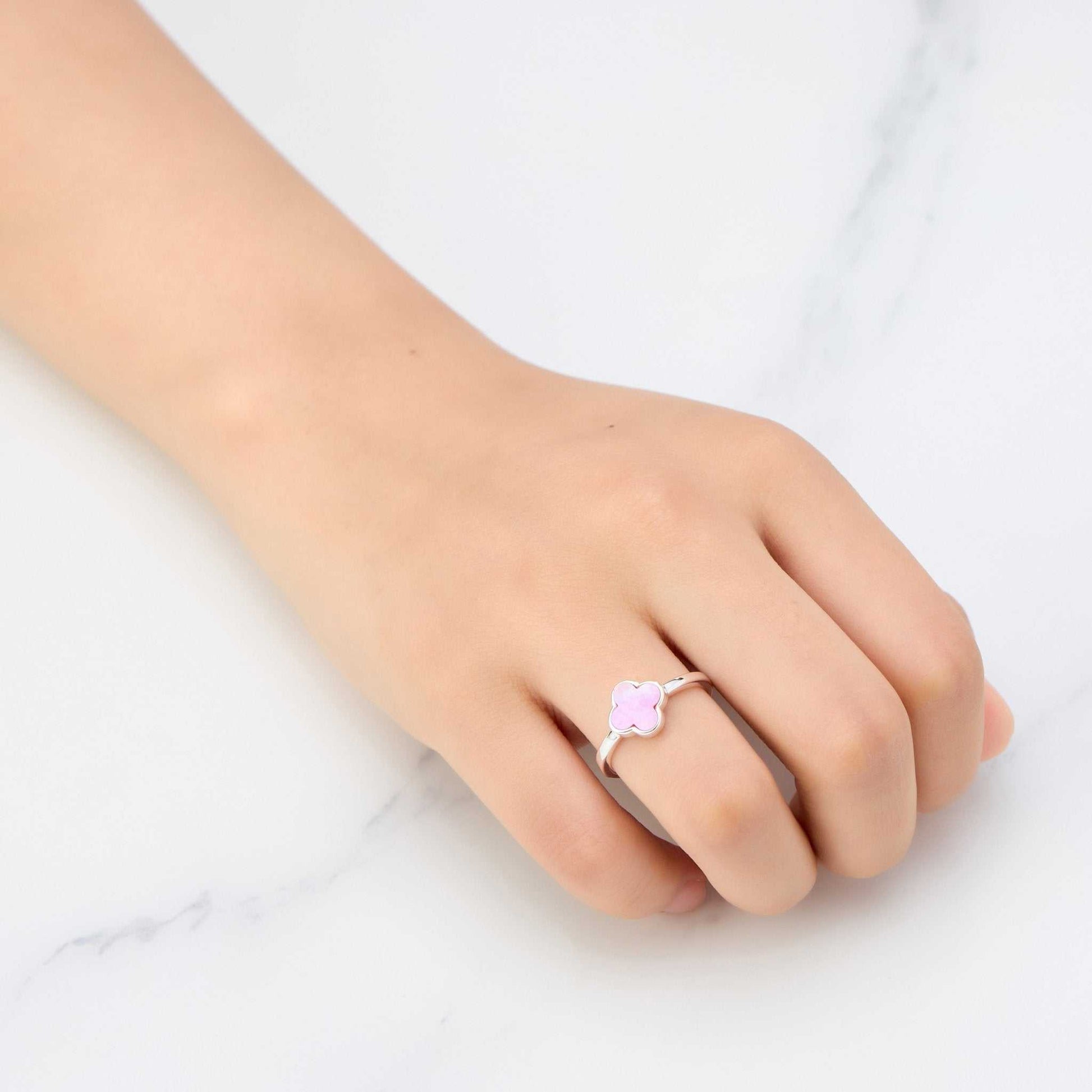 Pink Mother of Pearl Gemstone Adjustable Clover Ring
