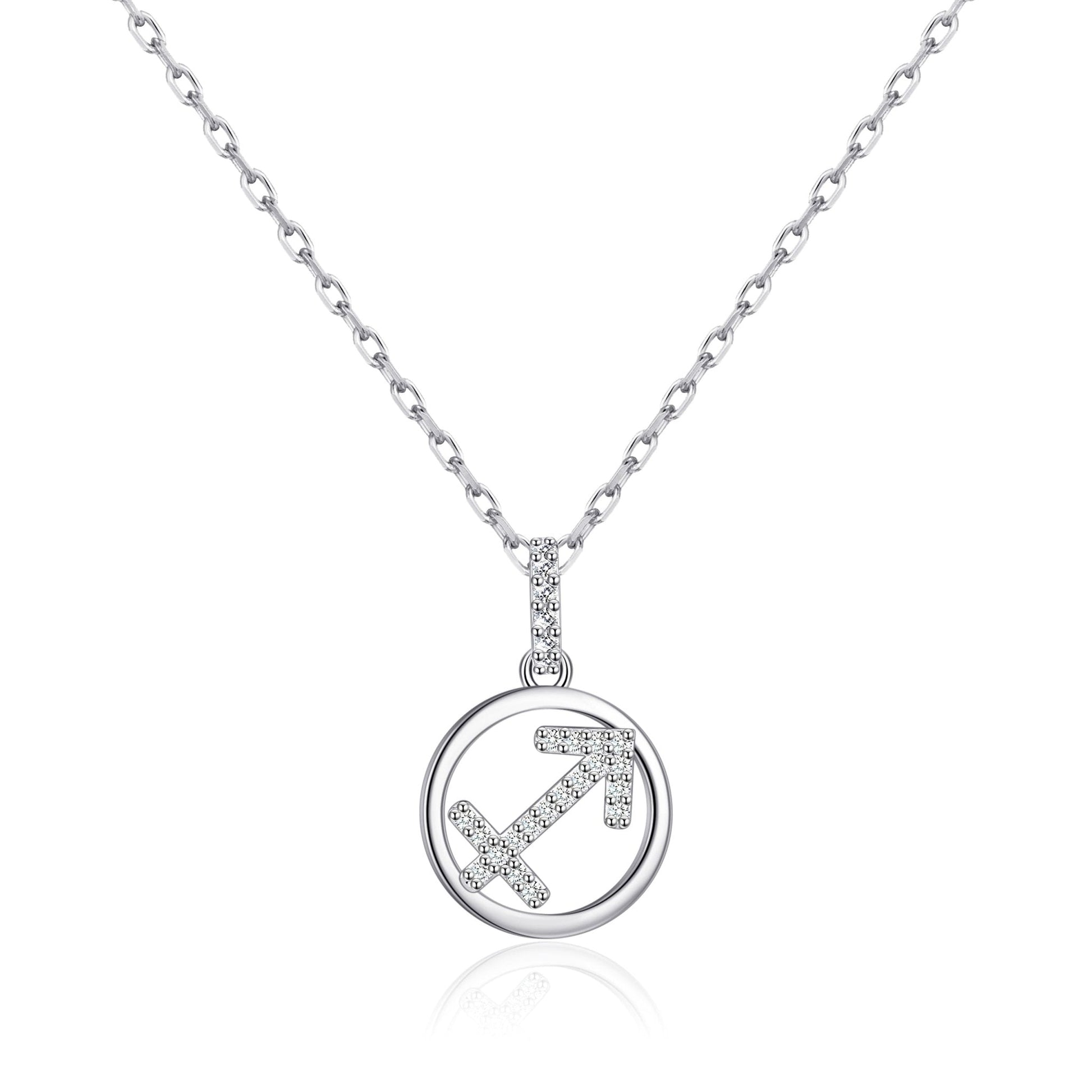 Expertly crafted with Zircondia® Crystals and Silver Plated Hypoallergenic Details, this Sagittarius Star Sign Zodiac Necklace is a must-have for any passionate believer in the power of astrology. This necklace will make a stunning statement piece. The necklace also comes with a gift pouch and quote card, making it the perfect gift for yourself or a loved one. Don't miss out on this beautiful and inspiring piece, adorned with 28 dazzling white crystals. Get yours today and let the magic of the stars guide you!