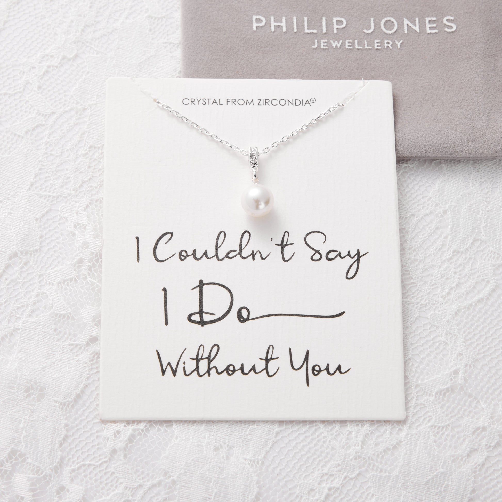 Silver Plated I Couldn't Say I Do Without You Pearl Drop Wedding Necklace Created with Zircondia® Crystals