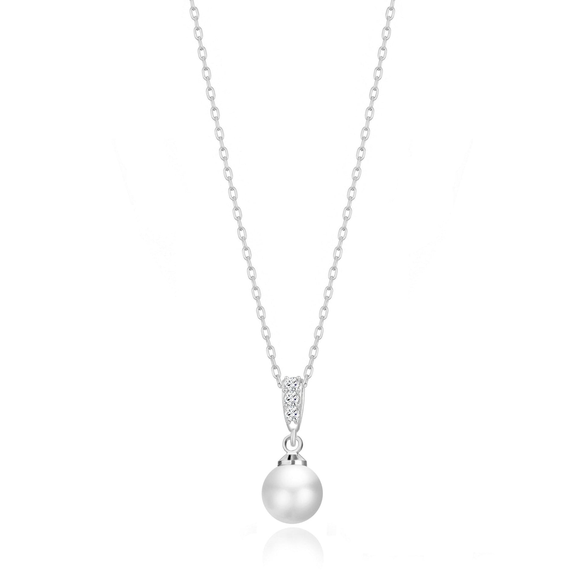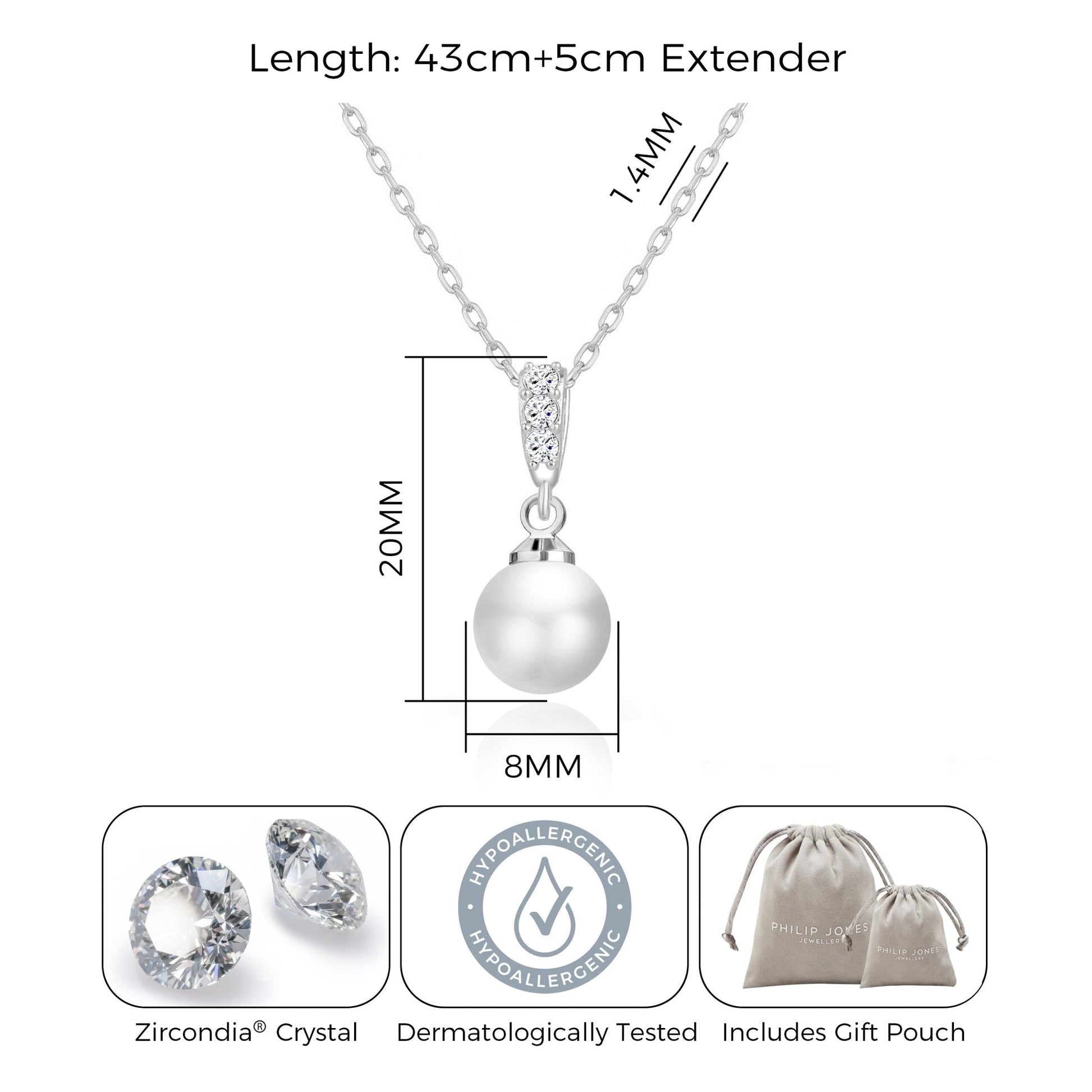 This stunning wedding necklace features dazzling Zircondia® crystals set on a silver-plated brass alloy base. Its hypoallergenic design and elegant pendant make it an ideal bridal or bridesmaid accessory. With a 43cm chain and 5cm extender, it can be adjusted to suit your personal style. The necklace includes three clear Zircondia® crystals and a 7mm round white shell pearl, beautifully presented in a gift pouch. A perfect addition to any bridal or bridesmaid jewellery collection—don’t miss this captivating piece!
