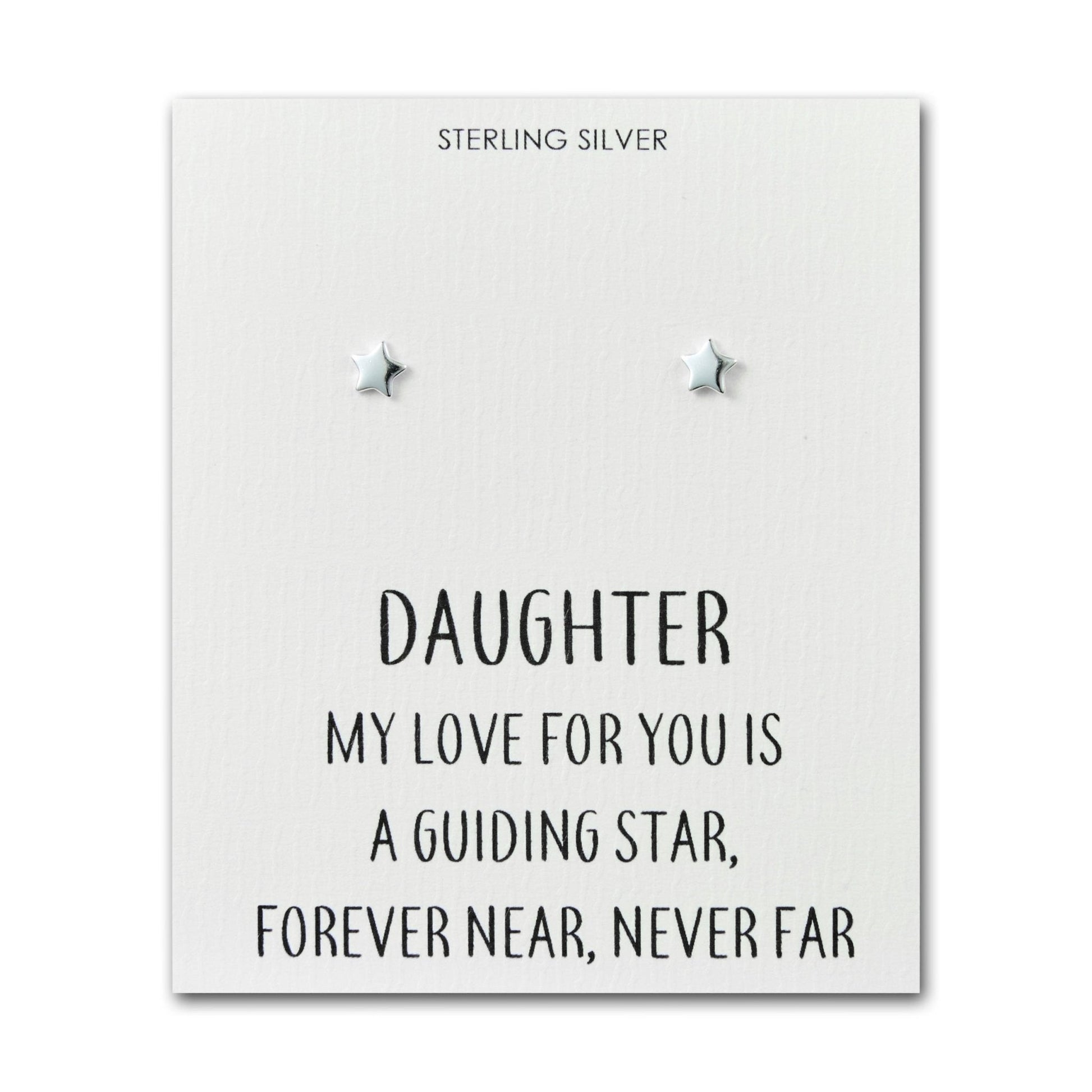 Sterling Silver Daughter Quote Star Earrings