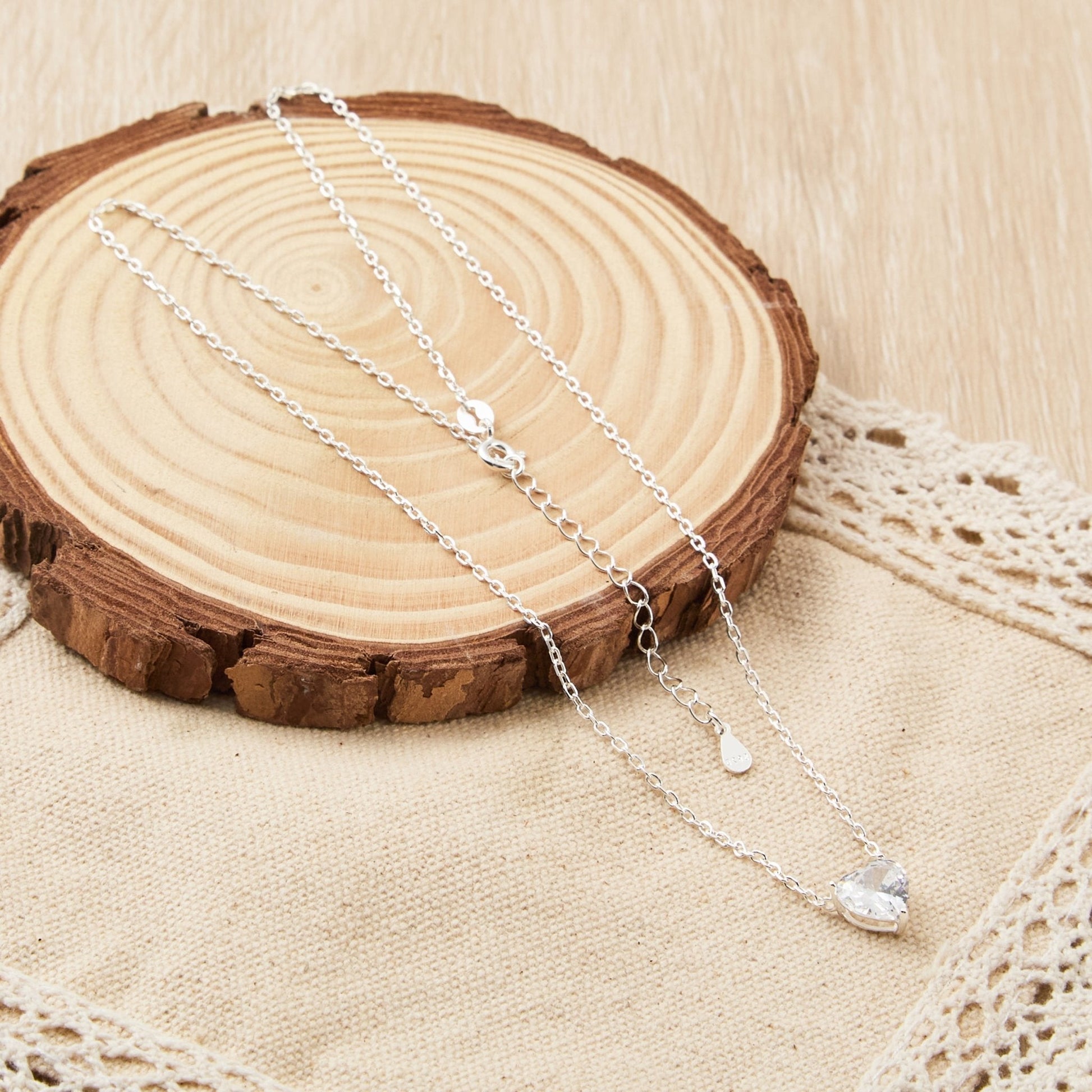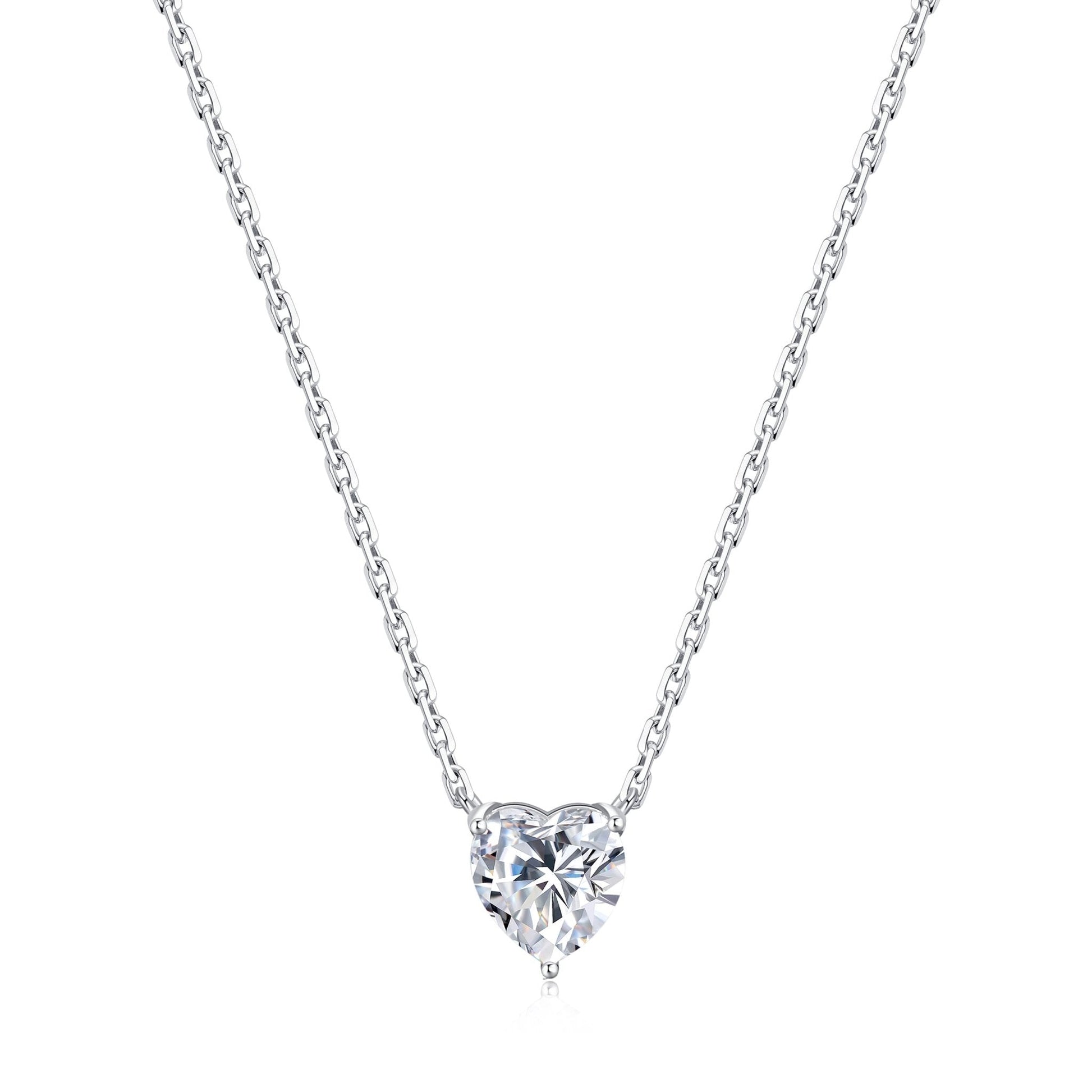 Sterling Silver Heart Solitaire Necklace Created with Zircondia® Crystals