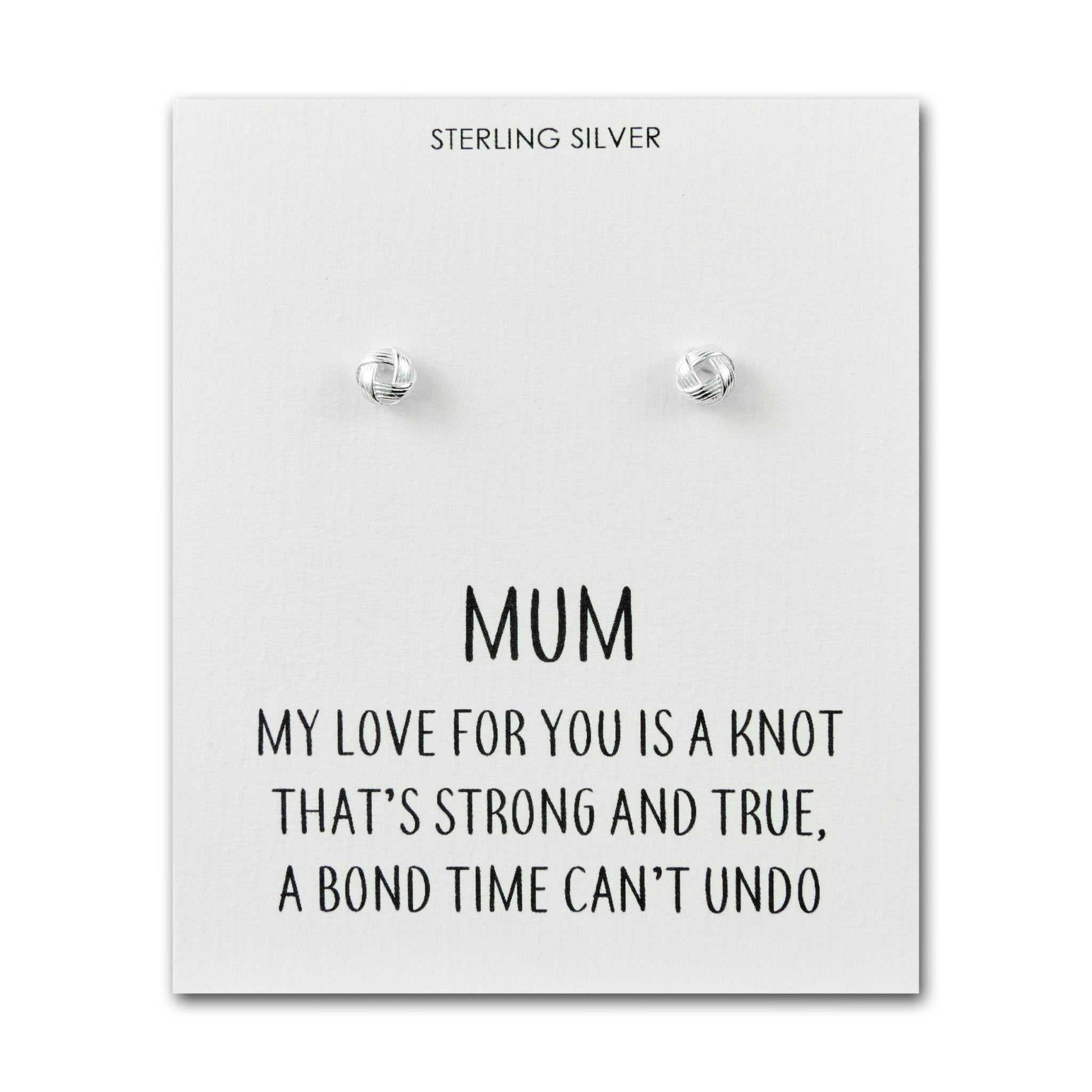 The Philip Jones Sterling Silver Mum Knot Earrings are a must-have addition to your jewellery collection. Made from high-quality stamped 925 silver, these hypoallergenic stud earrings are not only stylish but also safe for sensitive ears. Measuring 6mm x 6mm, the intricate knot design is both elegant and meaningful. With a delicate butterfly closure and a weight of only 1g, these earrings are comfortable to wear all day. Each pair comes beautifully packaged in a gift pouch with a quote card, making it the perfect present for your beloved Mum.
