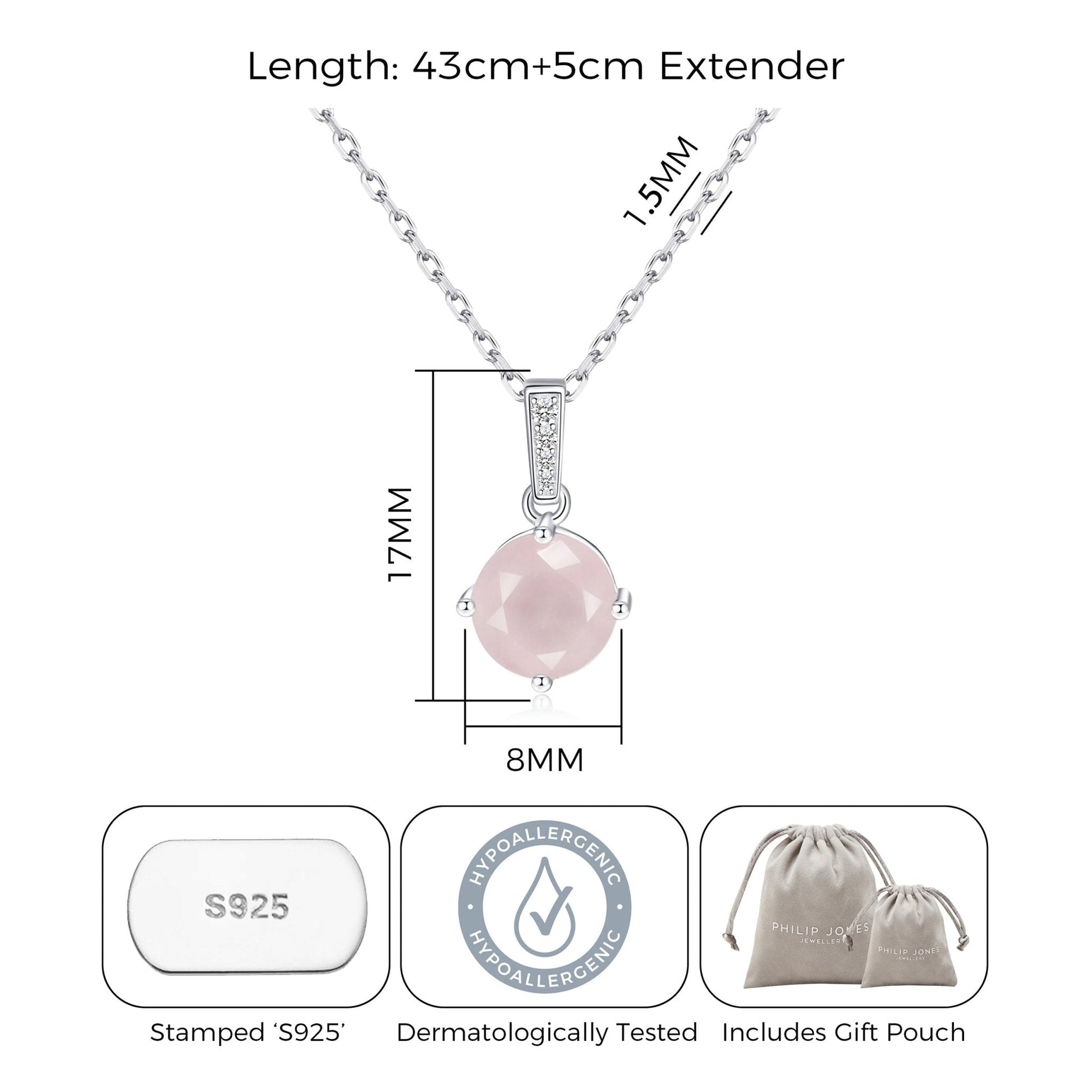 Experience the captivating beauty of genuine rose quartz gemstones in this stunning Sterling Silver Necklace. Stamped with 925, it showcases a 17mm (H) x 8mm (W) pendant on a 43cm chain, with a 5cm extender for the perfect fit. The hypoallergenic metal and elegant packaging make this piece a thoughtful gift.