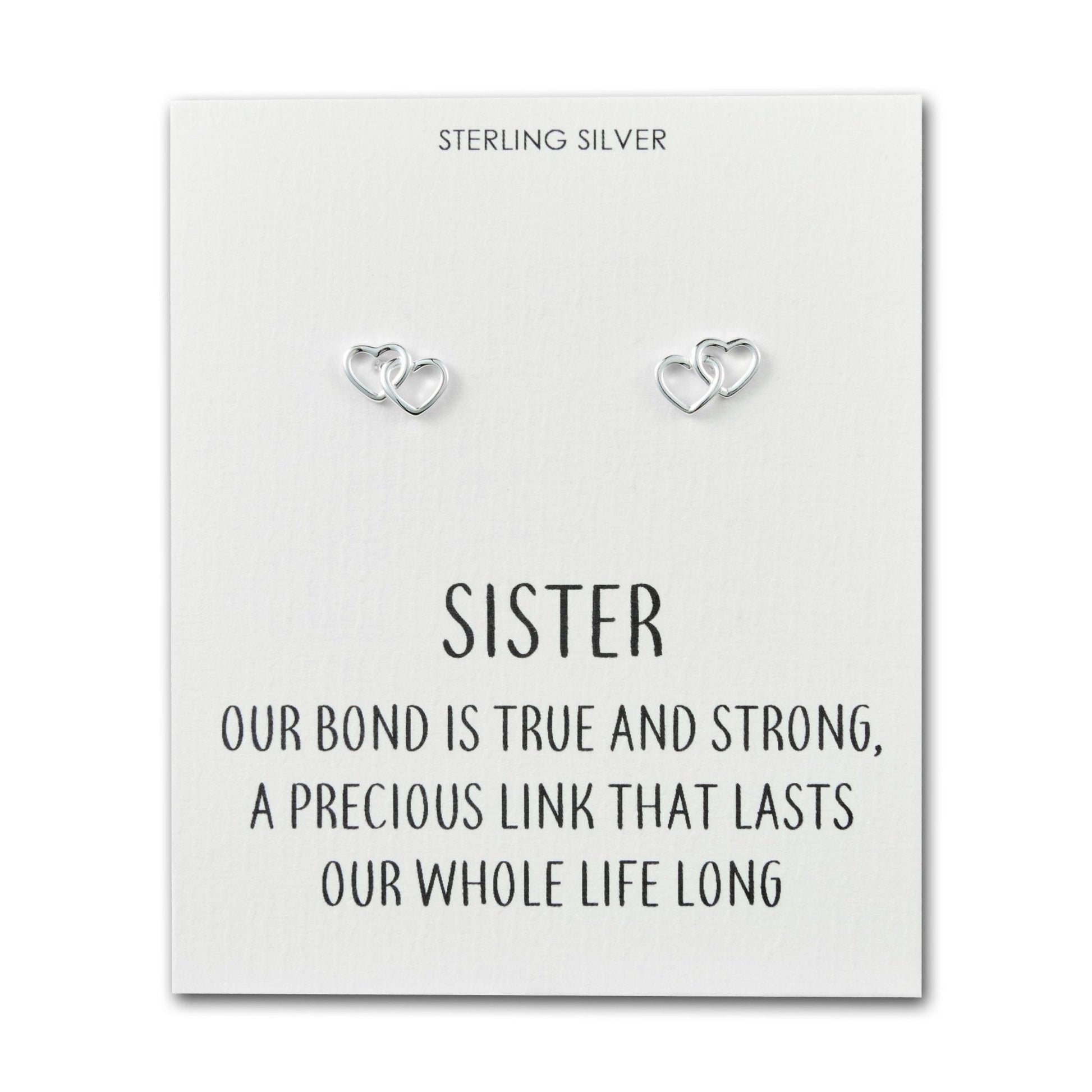 Sterling Silver Sister Quote Heart Link Earrings