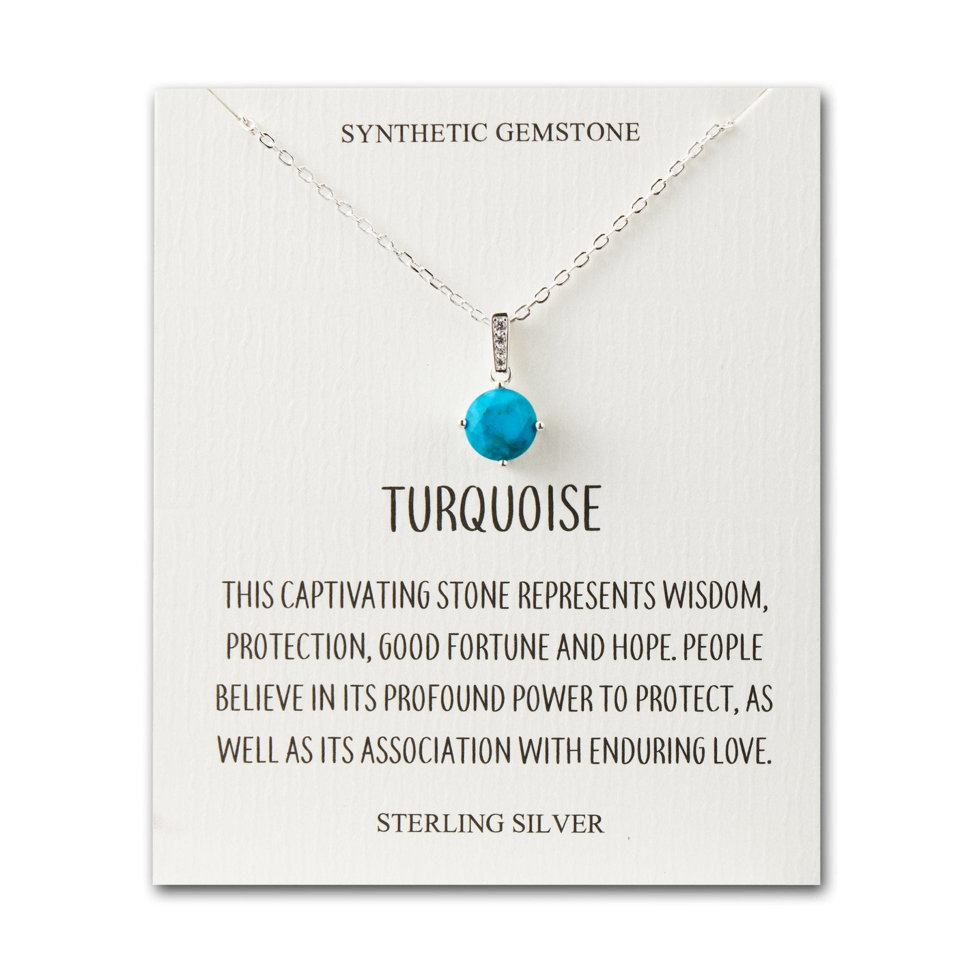 Sterling Silver Synthetic Turquoise Gemstone Necklace with Quote Card