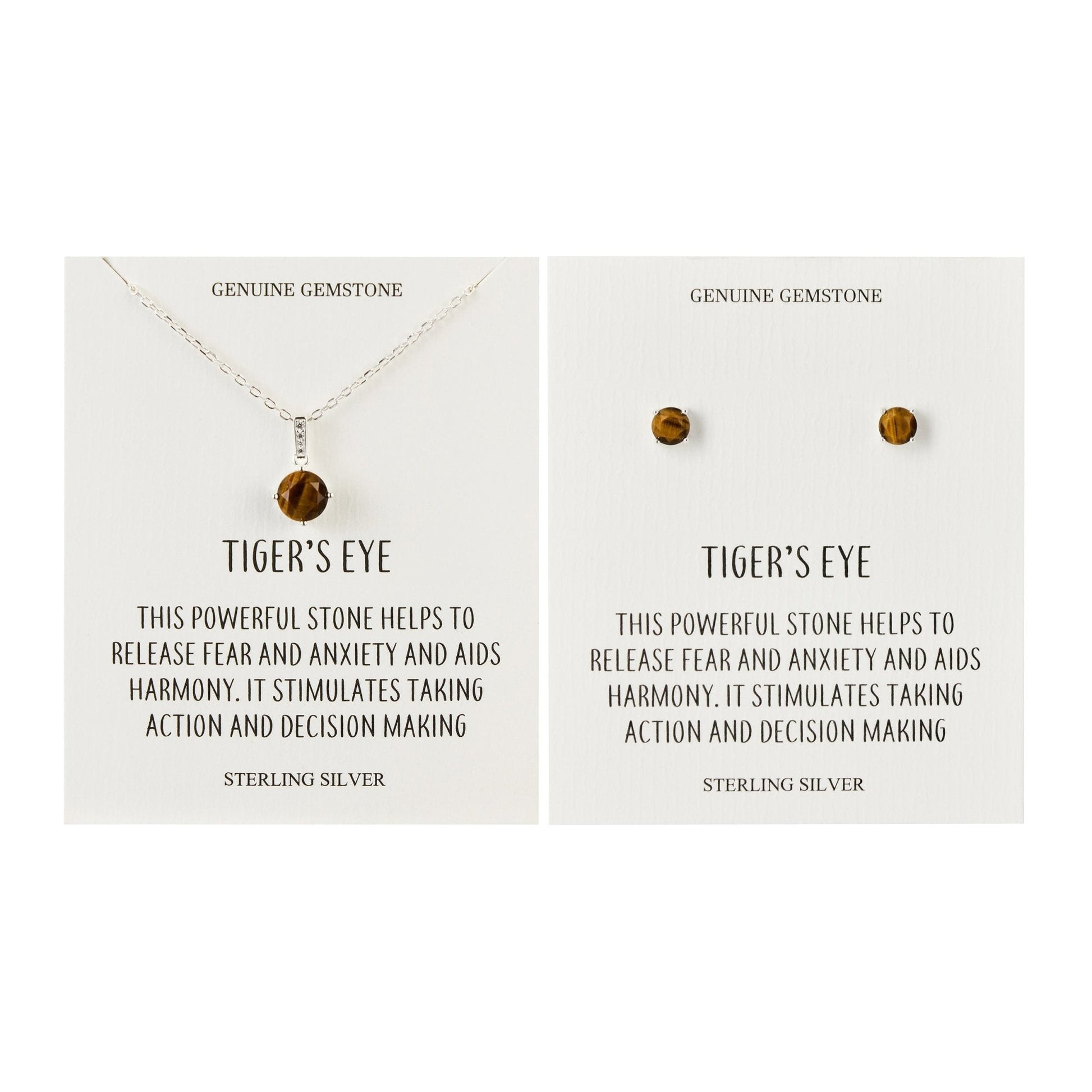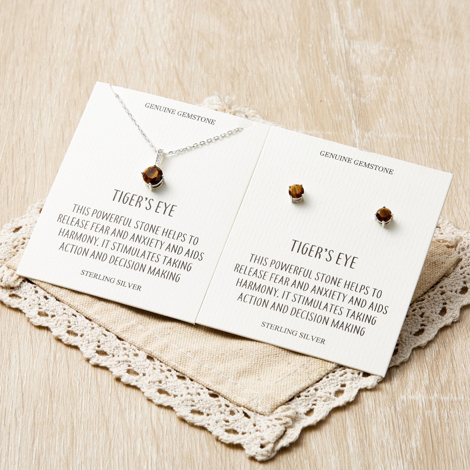 Sterling Silver Tigers Eye Gemstone Set with Quote Card